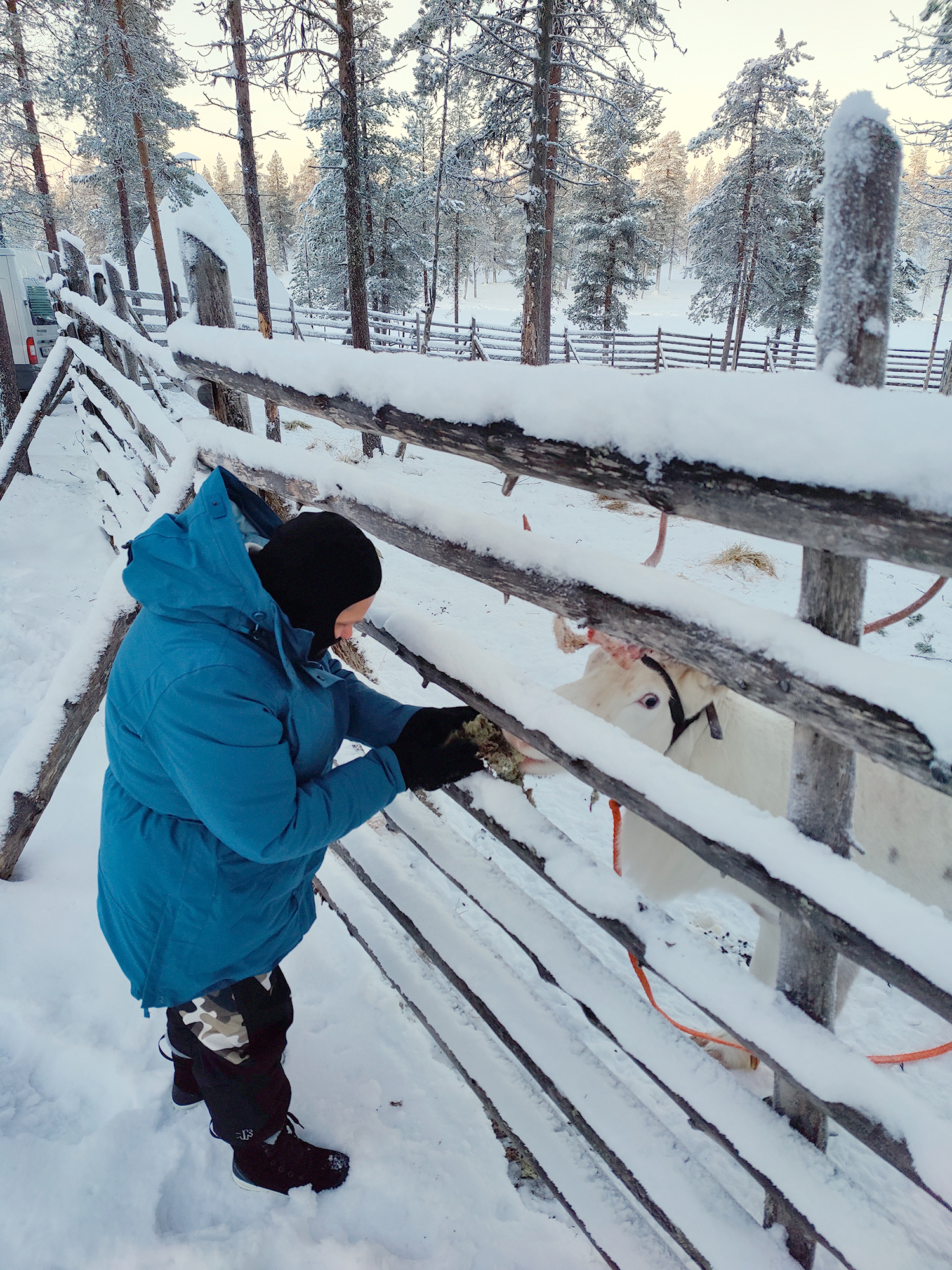 Dans l’après-midi, nous visiterons une ferme de rennes pour faire connaissance avec ces animaux emblématiques de la Laponie. Les animaux sont très apprivoisés et permettent de les caresser et de les nourrir. Vous pourrez même prendre une photo avec les rennes et immortaliser un moment unique de vos vacances en Laponie du Nord !