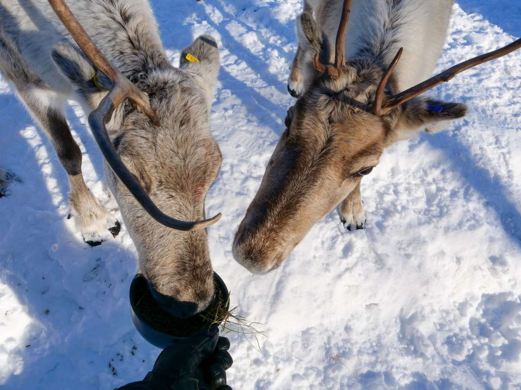 Après le déjeuner, nous nous rendrons à une ferme de rennes à proximité, où nous en apprendrons davantage sur les rennes et leur élevage. La vie des rennes et de leurs éleveurs est très intéressante et est rythmée par les saisons rapidement changeantes du Nord. À la ferme, nous aurons l’occasion de nourrir ces magnifiques animaux et, bien sûr, de prendre de nombreuses photos.